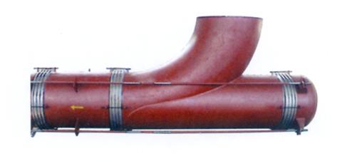 曲管壓力平衡型膨脹節(jié)的前部(通道端)有兩個(gè)工作波紋管,可以吸收來(lái)自彎管段產(chǎn)生的橫向位移;后部(平衡端)有一個(gè)平衡波紋管,曲管壓力平衡型波紋管可以吸收來(lái)自直管段的軸向位移。當(dāng)彎管段產(chǎn)生橫向位移時(shí),大拉桿上球螺母繞球面墊圈轉(zhuǎn)動(dòng),同時(shí)大拉桿承受內(nèi)壓的推力,因此膨脹節(jié)常用于泵、罐、壓縮機(jī)、汽輪機(jī)出口處,以減少對(duì)上述設(shè)備的作用力。